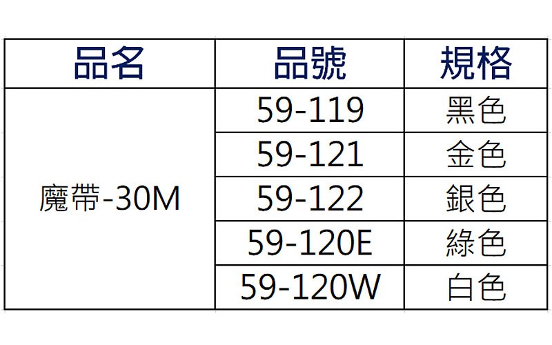 ( 59-119 魔帶-30M 黑色、59-120W 魔帶-30M 白色 )