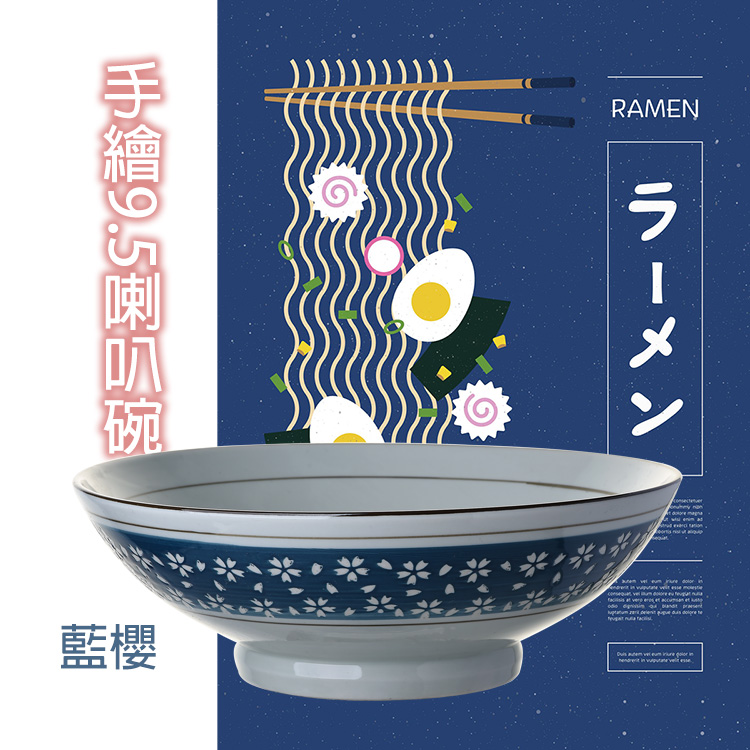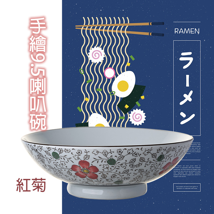 手繪9.5喇叭碗 (紅菊/藍櫻)