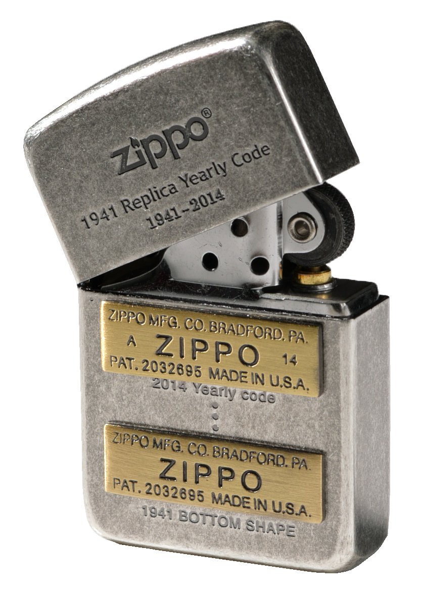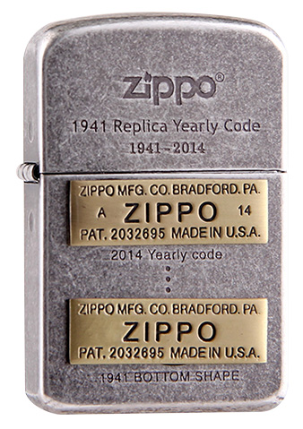 此款為1941復刻機身採用仿古銀表面並雷雕上ZIPPO底部代碼的演變歷史,透過加上金色1941至2014的代碼徽章來突顯經典的改變。